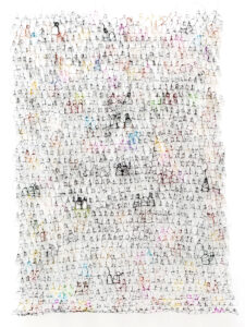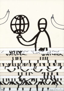 Although Dan Perjovschi trained to be a painter (at the George Enescu University of the Arts in Iasi, Romania), his work has since the early 1990s developed into a prolific drawing practice, focusing in particular on satirical drawing. By reducing his medium to its most elementary expression – the clear line – Perjovschi endows his sketches with maximum legibility, which as a result brings his drawings closer to the act of writing. The notions of drawing and writing are, indeed, inseparable in the artist’s work. But if clarity, spontaneity, and immediacy are so typical of his sketches, his finished drawings represent the most direct materialization of a thought. Seeking more than to communicate something about the world rather than simply to aestheticize it, Perjovschi’s thoughts develop in response to current events that affect the artist’s immediate environment, such as the reconstruction of cultural identity in post-communist Romania, although inspiration can also come from topics in the international media. Ultimately, Perjovschi’s art presents us with a gaze that is both ironic and acerbic. Unsparing toward the popular clichés circulating in the news media, he raises questions about politics, religion, the role of the individual in the collective, and the relationship of the global and the local. Nor does he neglect the inherent contradictions in the socio-economic domain where his work is viewed, i.e. the art world. To expressions of violence and extremism, Perjovschi opposes laughter and mockery as the safeguards of free thought and the free expression of thought.