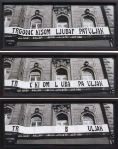 Zagreb based artist Goran Trbuljak has been active since the late 1960s, in the context of conceptual art and the so-called New Art Practice. While searching from the very beginning for alternative means of production and representation of the artwork, Trbuljak has redefined the status of artistic context, asking radical questions about the autonomy of the system of museums and galleries and about the mechanism by which something is accepted as art. He tested the accidental as the key moment of creating work mechanism, organizing exhibitions in streets and hallways. For the artist a simple gesture could function as a critique of the artistic and social system. Still, there are typical traces of humor and self-irony in Trbuljak’s oeuvre.