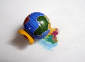 Monotype, 2012, plastic globe, wood, colors, 6 x 25 x 25 cm